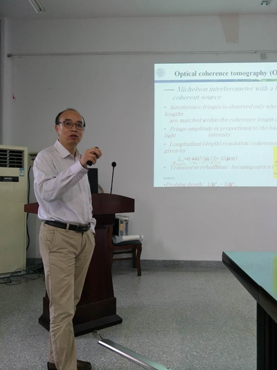 2018年9月14日下午4:00,在院会议室,物理与电子工程学院邀请南京航空航天大学博士生导师刘友文教授作《基于散斑相关和视差方法实现散射层非浸入深度分辨成像》专题学术报告。报告会由庄国策经理主持,学院师生代表聆听了专题学术报告。