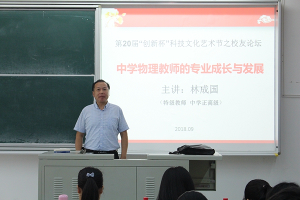2018年9月14日下午3:00,在公共教学楼B107,新能源与电子工程学院邀请85届员工林成国老师(中学特级教师)作《中学物理教师成长与发展》专题学术报告。