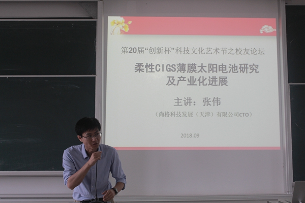 2018年9月14日上午10点,在公共教学楼D402教室,新能源与电子工程学院邀请06届员工张伟博士作《柔性CIGS薄膜太阳电池研究及产业化进展》专题学术报告。
