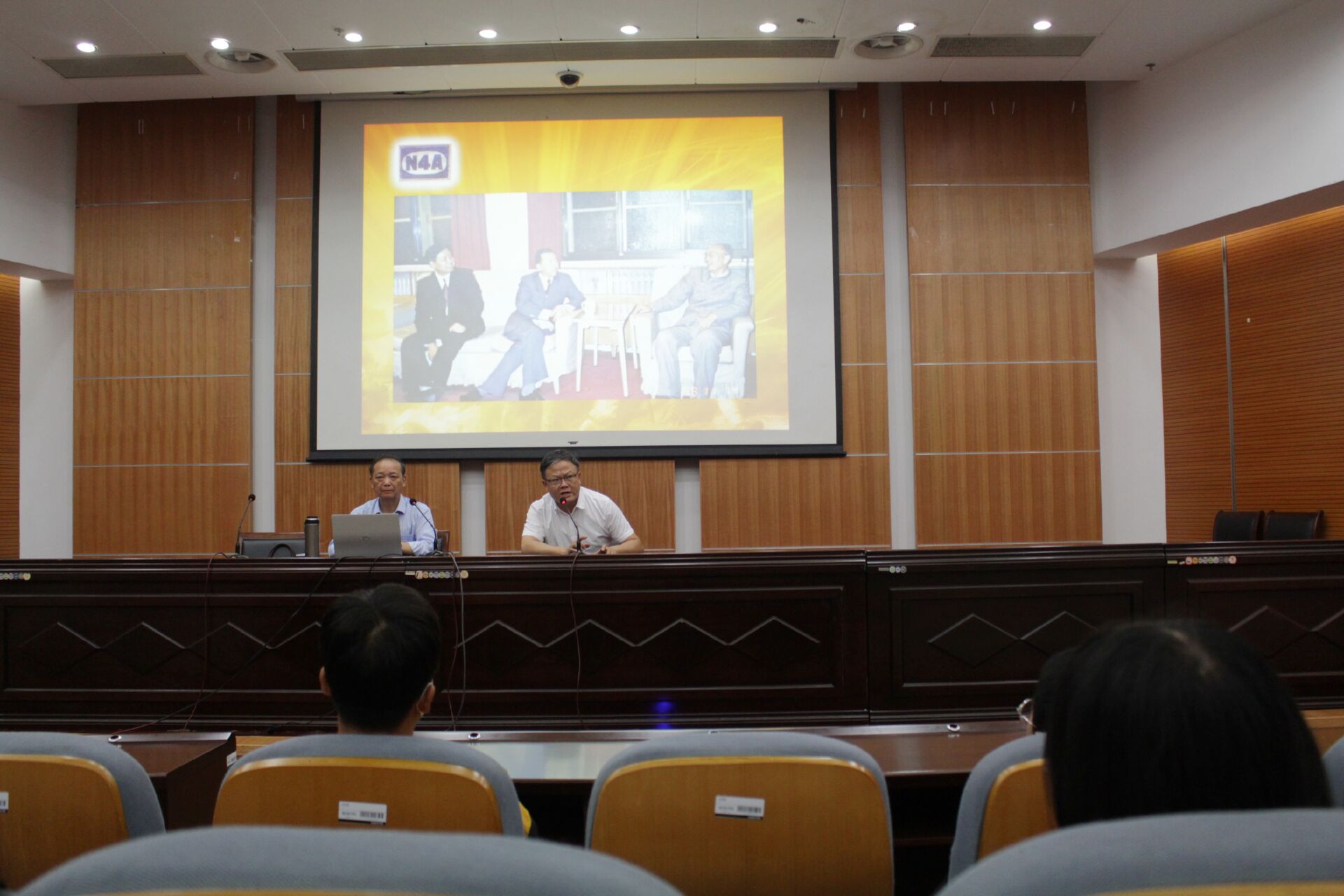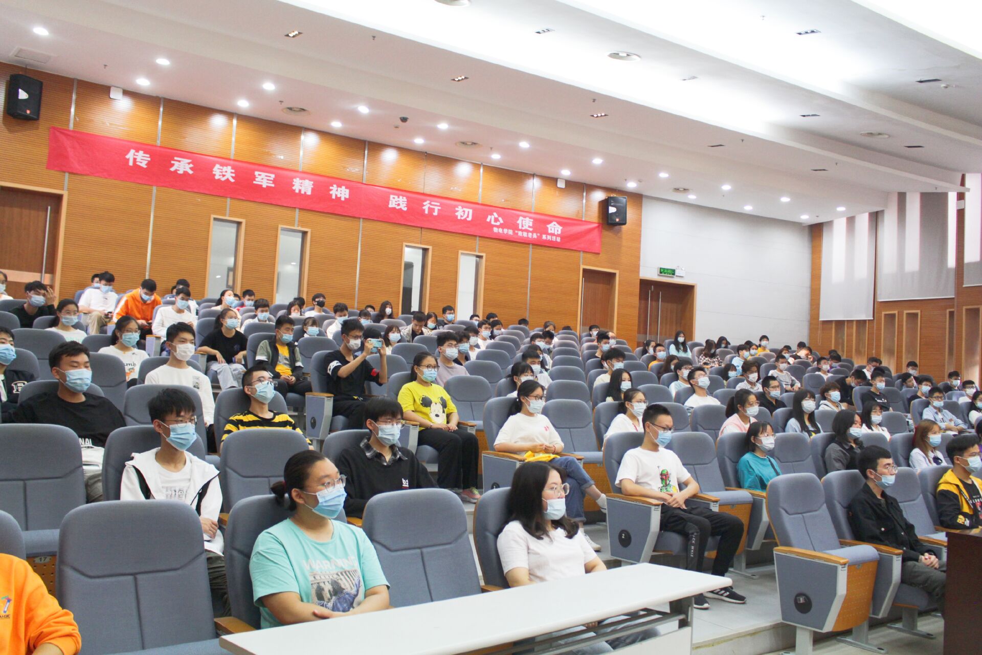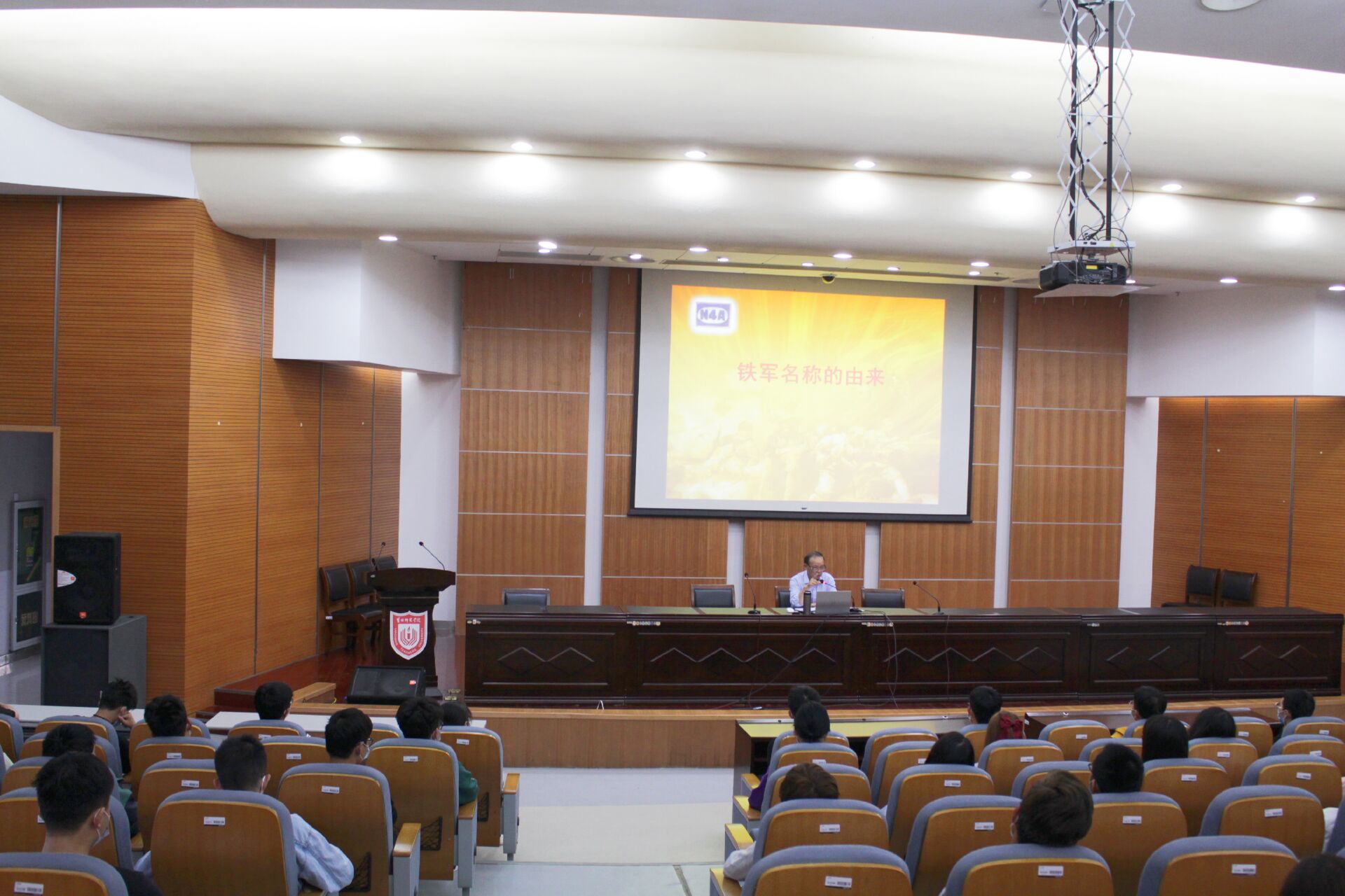 会议伊始,陈宗彪老先生从“信仰、担当、奋斗”三个角度向同学们阐明了“铁军精神”的时代特征。陈老先生从“铁军”名称的由来讲起,结合主题词“信仰”,重点讲述了叶挺、陈毅等老一辈革命家浴血奋战的动人事迹,使同学们深刻感受到了革命前辈的奋斗精神。接着,陈老先生对“铁军精神”的内涵做出自己的理解,他认为“铁军精神”是“跟党举旗的奋进精神”、是“救亡图存的爱国精神”、是“不怕牺牲的担当精神”、是“艰苦奋斗的创业精神”、是“服务人民的忘我精神”。最后,陈老先生对与会老员工提出殷切希望:第一,希望同学们能够坚定理想信念,永远跟党走;第二,希望同学们认真完成好自己的学业,练就过硬本领;第三,希望同学们走进社会后,要有责任感、担当意识,传承好、发扬好“铁军精神”。