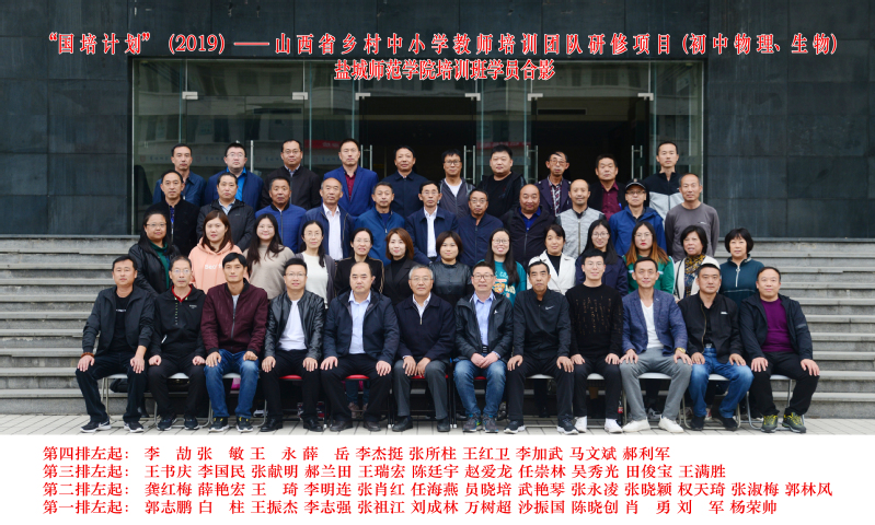 “国培计划(2019)”——山西省乡村中小学教师培训团队研修项目(初中物理、生物)在盐培训于2020年10月9日在yl6809永利检测中心报到开班,到11月7日顺利结束。本次培训人数为47人,合格结业47人。