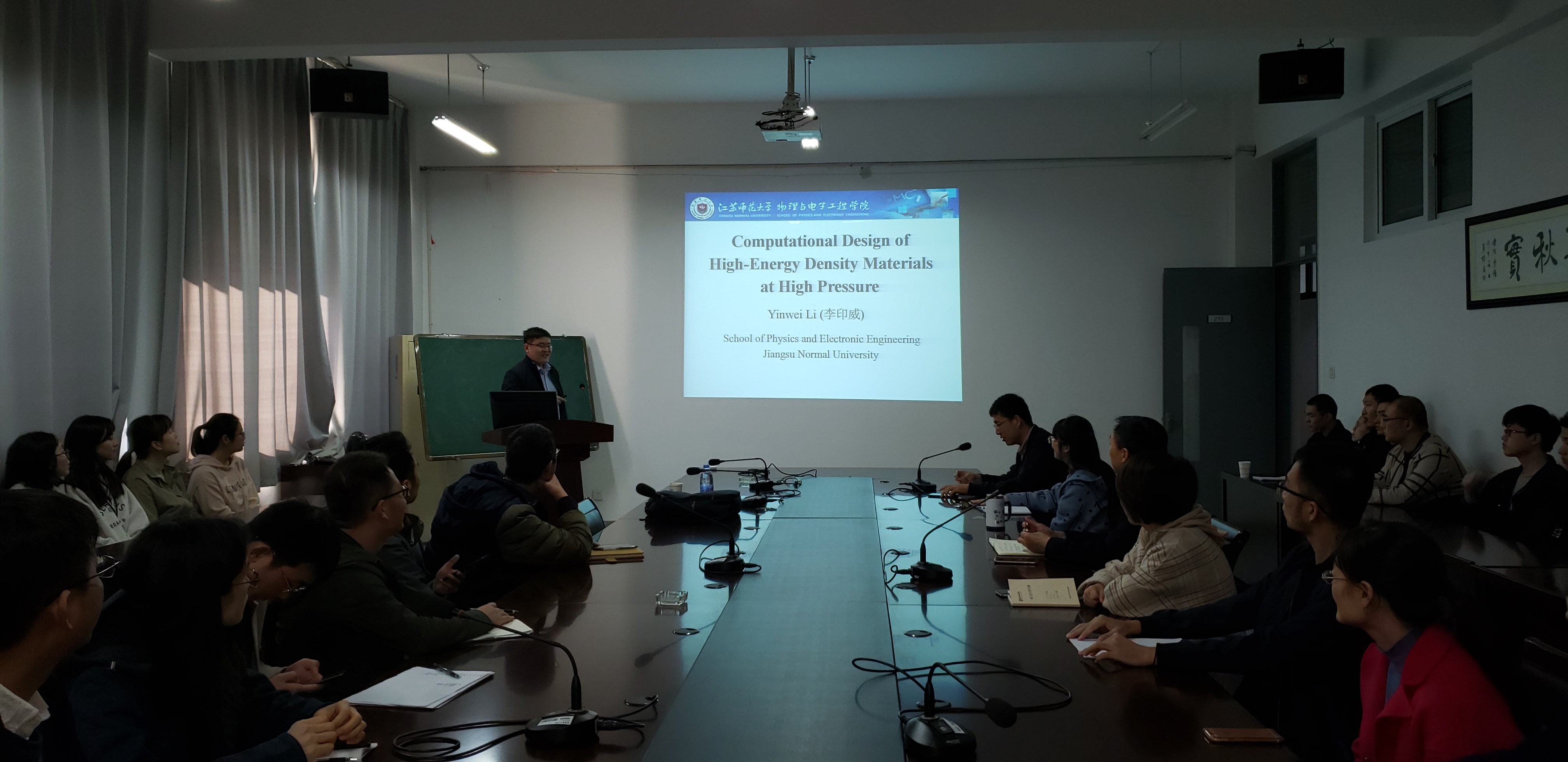 11月12日,江苏师范大学李印威教授应邀来公司作题为“高压下新型高能量密度材料的理论设计”的学术报告。