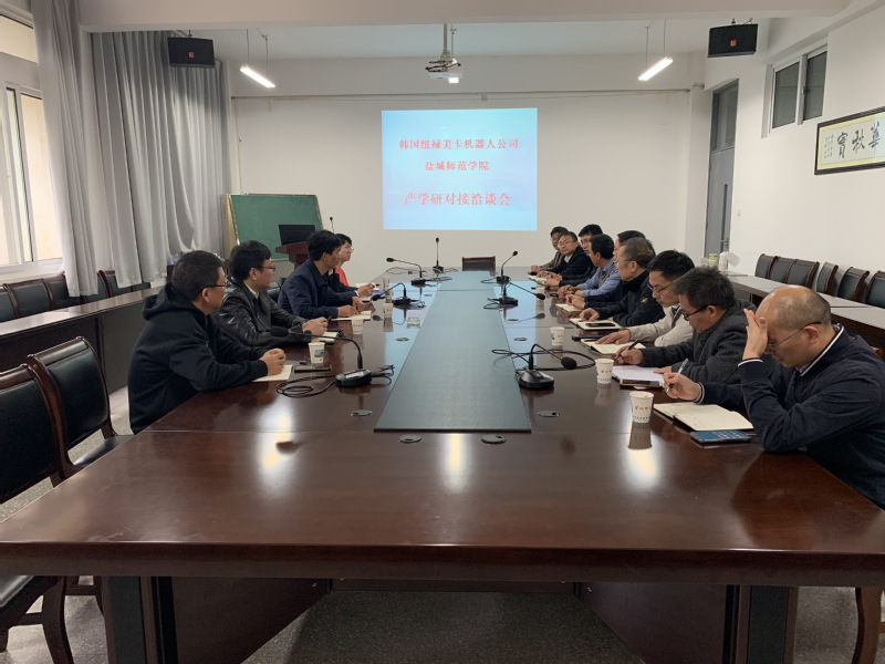 日前,盐城经济技术开发区科技局张来贵局长、盐城经济技术开发区创新创业中心年竹渊主任、韩国纽禄美卡机器人公司中国区总经理崔泽洙一行来公司交流,校科技与产业处康贻军副处长、yl6809永利检测中心陈杰副经理、张志海副经理、雷承富副书记热情接待了盐城经济技术开发区科技局、韩国纽禄美卡机器人公司一行。