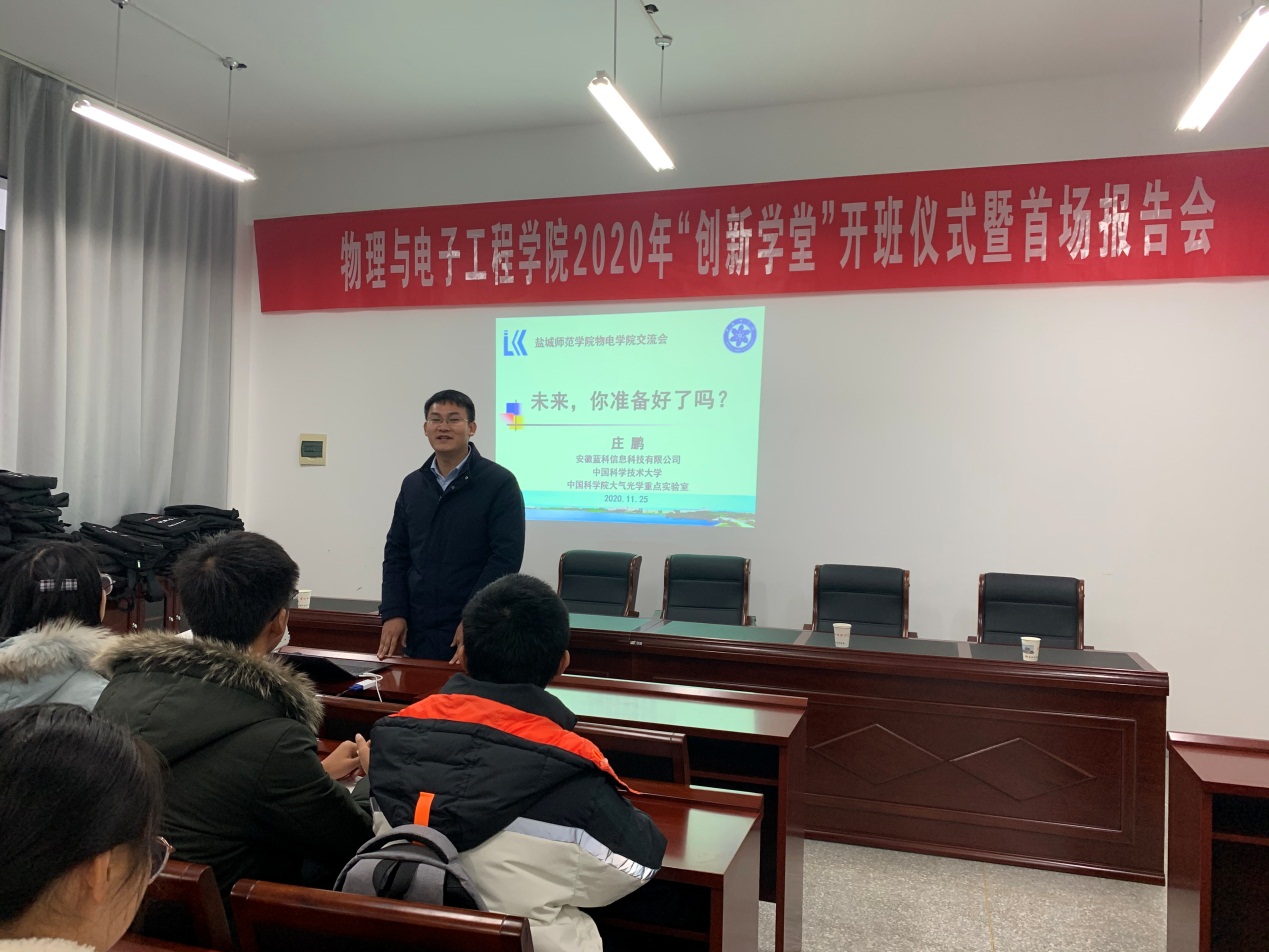 开班仪式结束后,物电学院15届毕业生、中国科学技术大学博士庄鹏为学员们做了题为“未来,你准备好了吗?”的报告会。