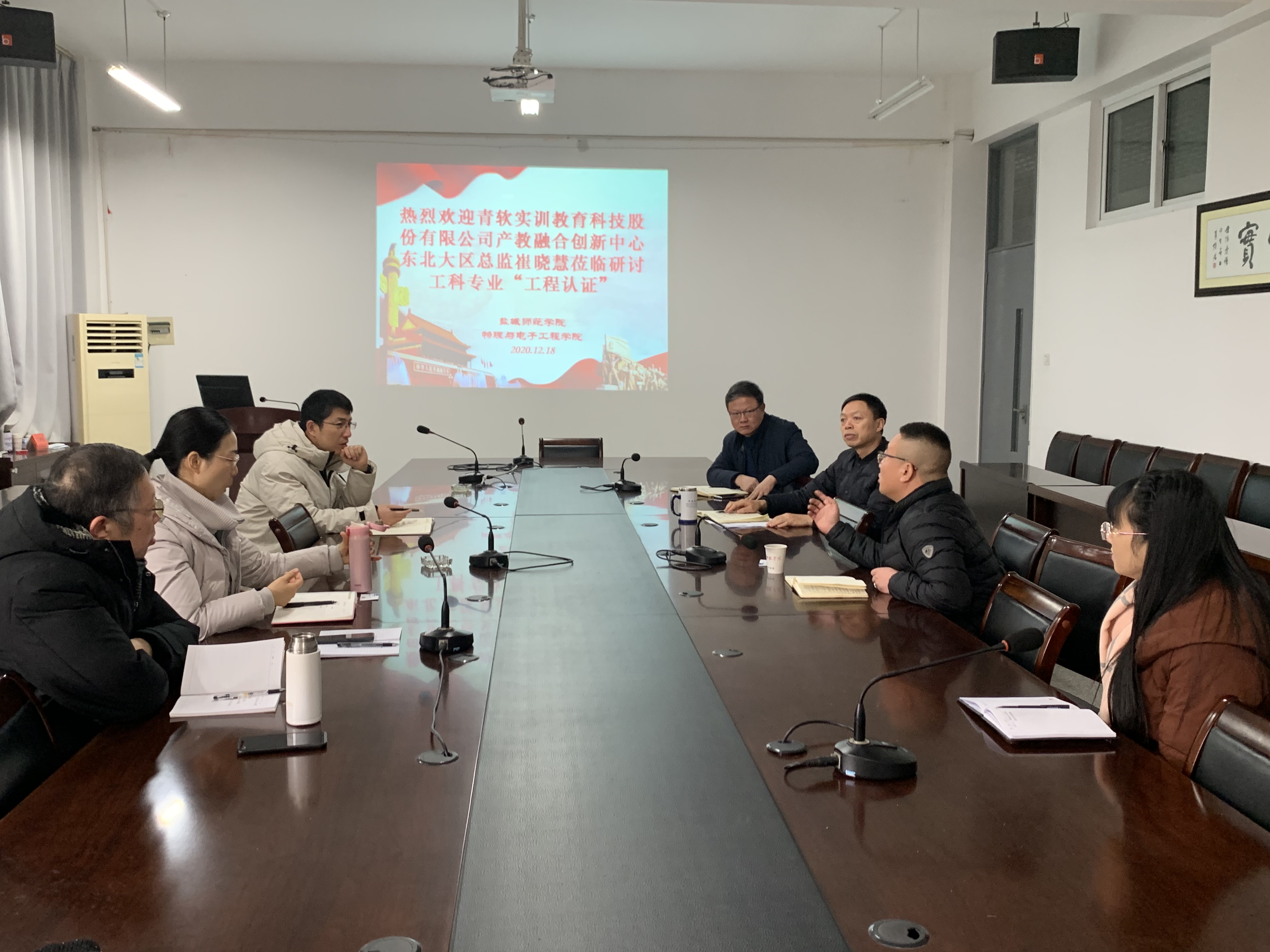 12月18日上午,物理与电子工程学院召开工程教育认证分工推进会。会议邀请青软实训教育科技有限公司产教融合创新中心东北大区总监崔晓慧参会。会议由副经理陈杰主持,党总支书记孙伟,副经理张志海,电子信息工程系主任施文娟,副主任卞月根,电气工程及其自动系主任王荣,副主任童巧英参加会议。