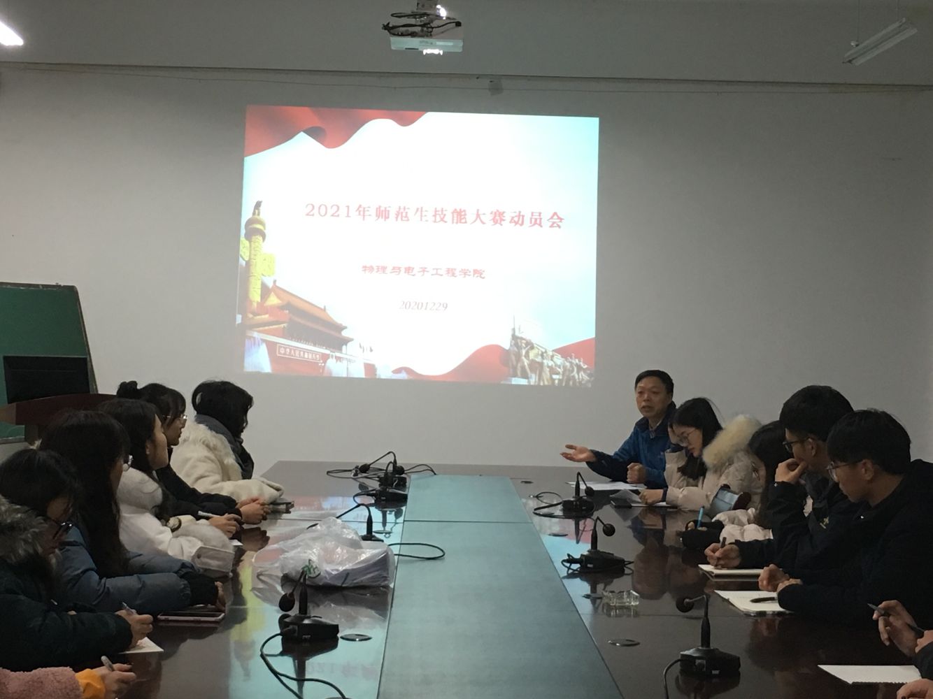 12月29日下午,yl6809永利检测中心副经理陈杰、教师张新玉在逸夫楼二楼会议室召开了师范生技能大赛动员大会,有十五位同学参加会议。