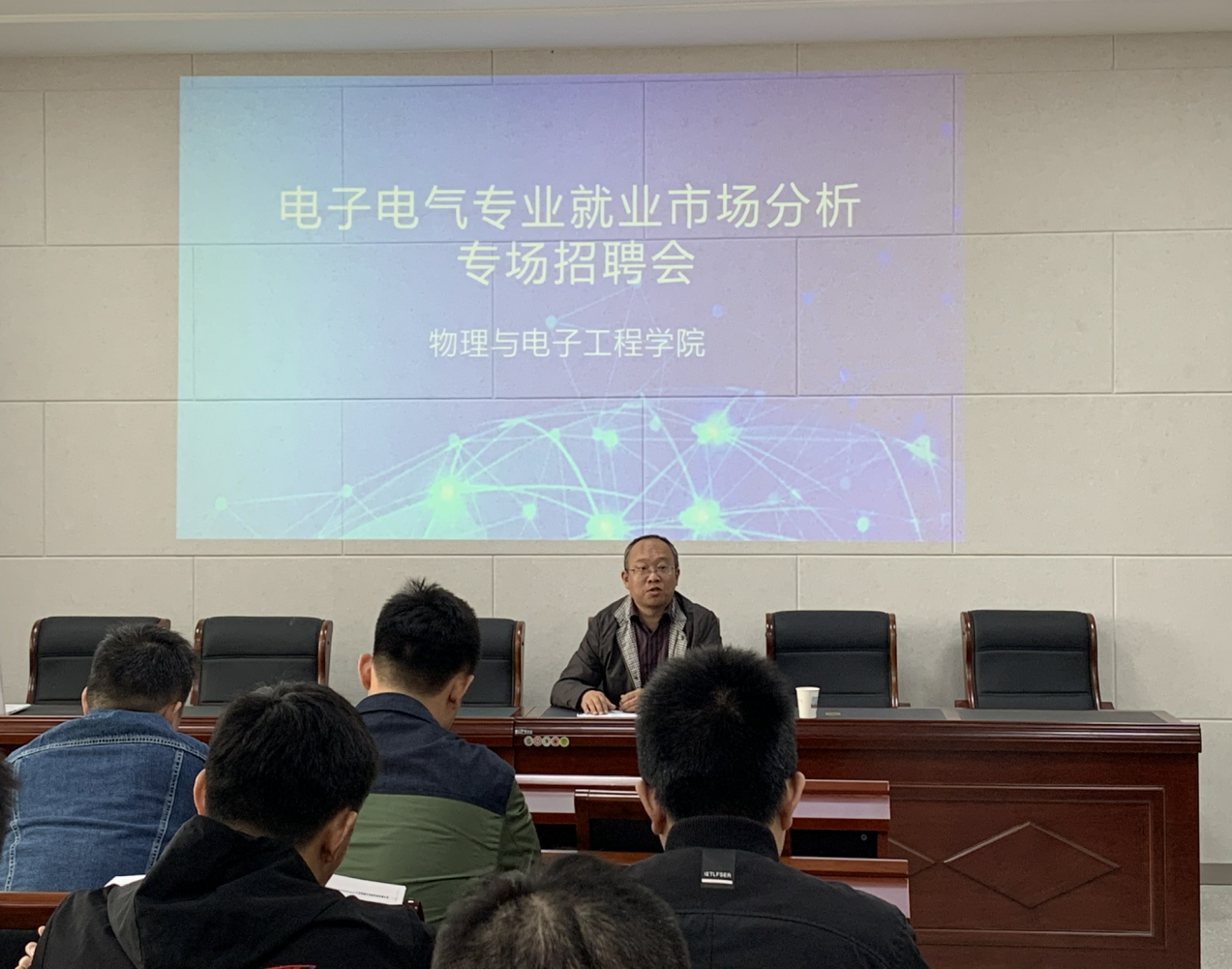 3月26日下午yl6809永利检测中心于逸夫楼2楼报告厅举办了电子电气专业就业市场分析报告会暨专场招聘会。明纳半导体科技有限公司、东紫光电科技有限公司的黄飞博士结合自己学习、创业的经历向即将毕业的同学们分析了现阶段电子电气专业就业市场。