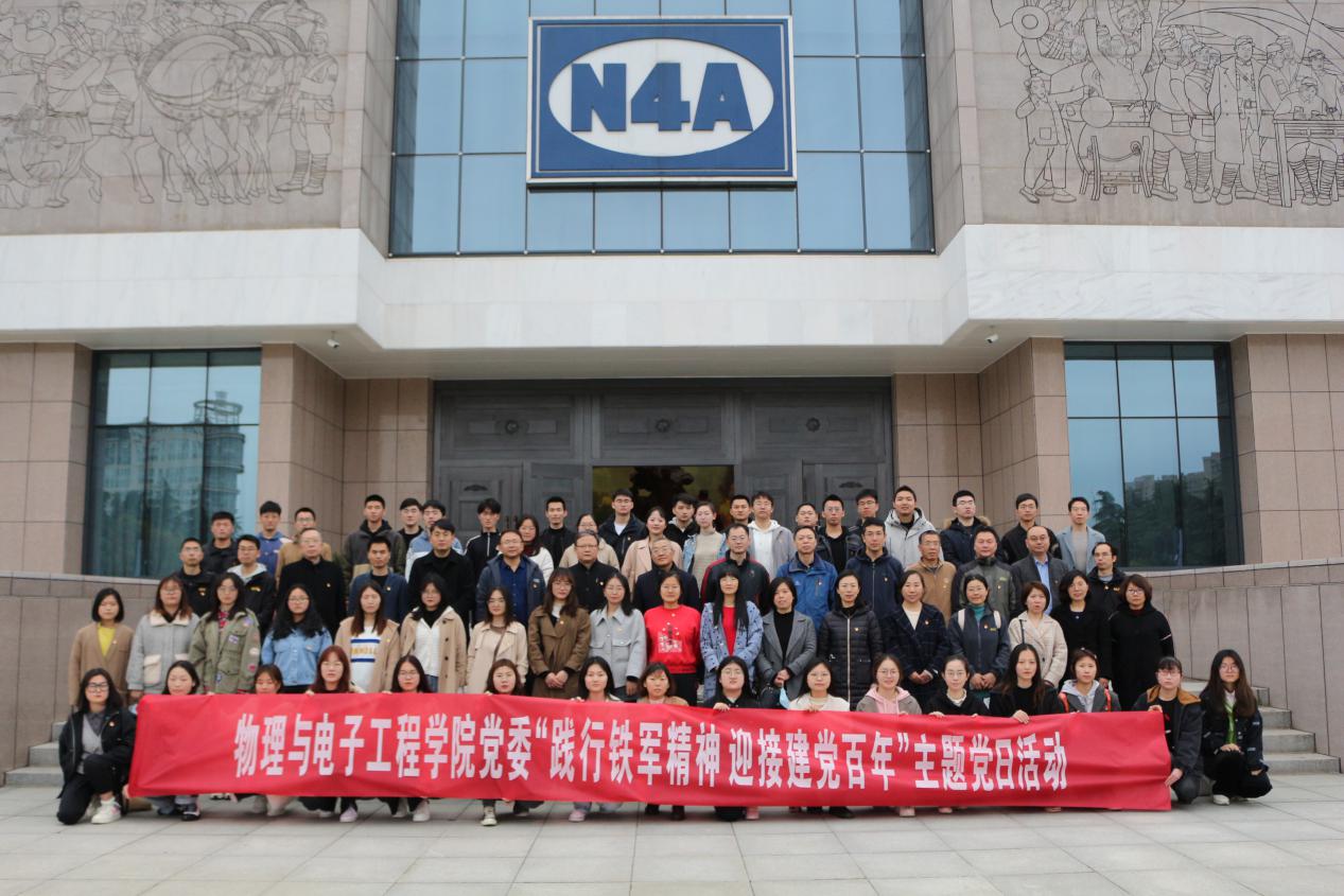 3月31日,物理与电子工程公司党委在新四军纪念馆举办了“践行铁军精神迎接建党百年”主题党日活动,公司党委书记孙伟,党委副书记、副经理雷承富,副经理陈杰,副经理张志海以及全体党员师生参加活动。
