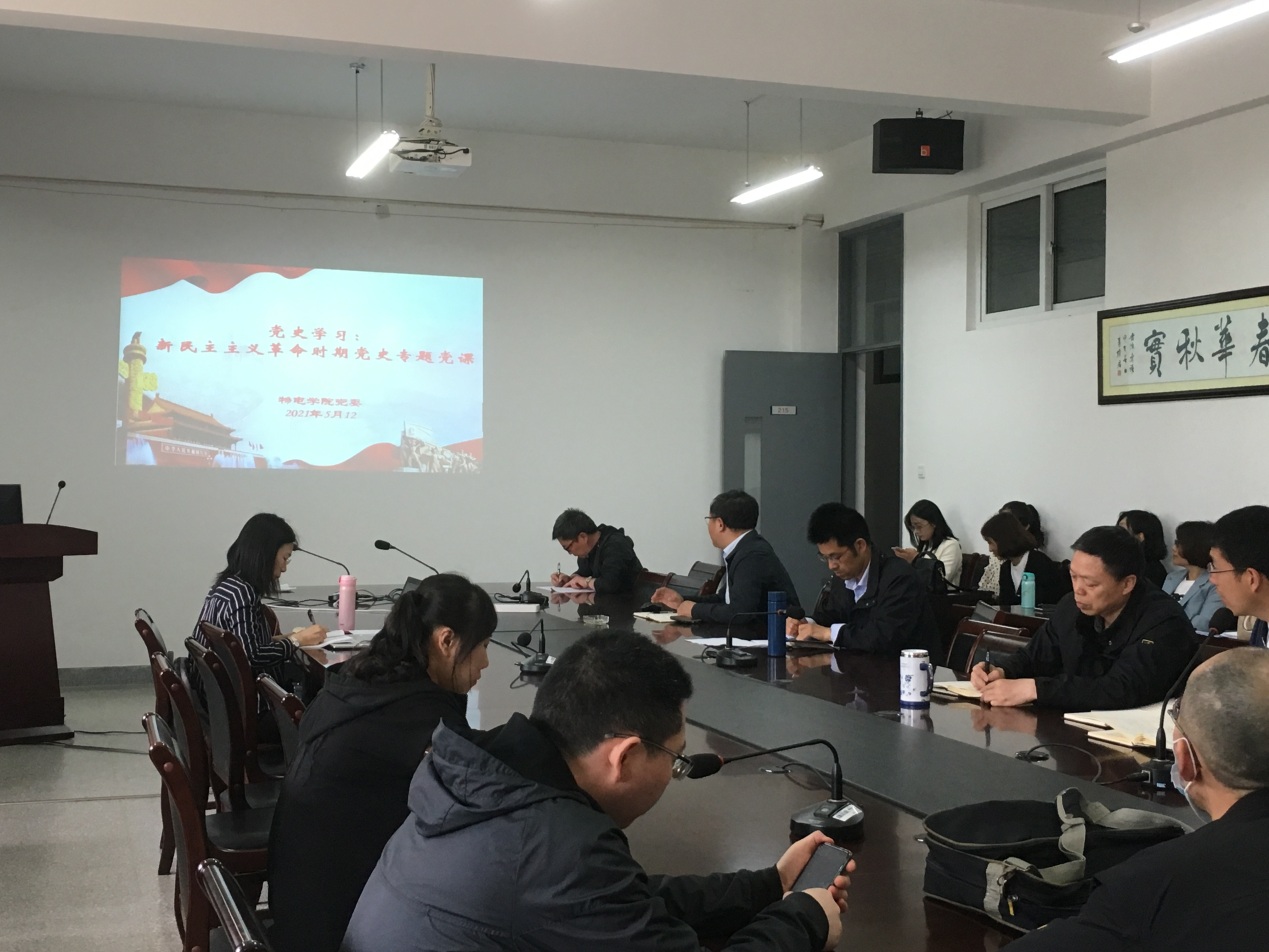 5月12日下午,公司组织党员教师学习党史,党委书记孙伟给全体教师党员上党课,从六方面介绍了新民主主义革命历史。