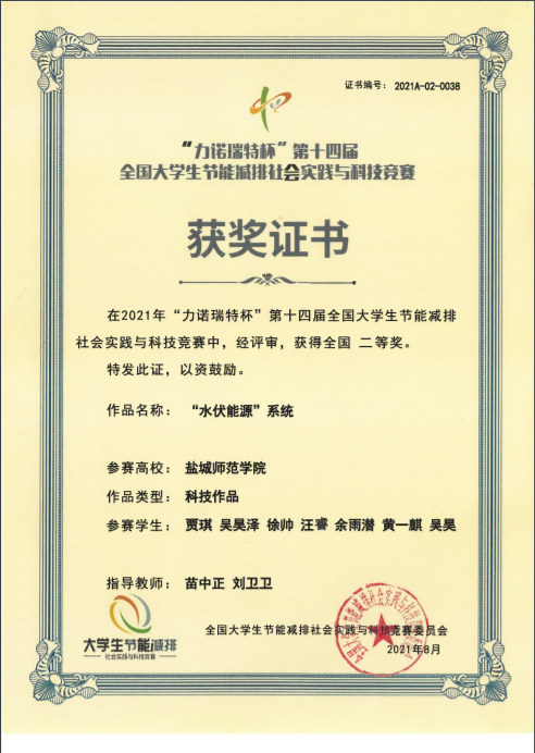 由教育部高等学校能源动力类专业教学指导委员会指导、全国老员工节能减排社会实践与科技竞赛委员会主办的第十四届“力诺瑞特杯”全国老员工节能减排社会实践与科技竞赛日前在山东大学落下帷幕。总决赛中,公司yl6809永利检测中心的贾琪团队(参赛队员:贾琪、吴昊泽、徐帅、汪睿、余雨潜、黄一麒、吴昊,指导教师:苗中正、刘卫卫)的作品“水伏能源系统”获得全国二等奖。