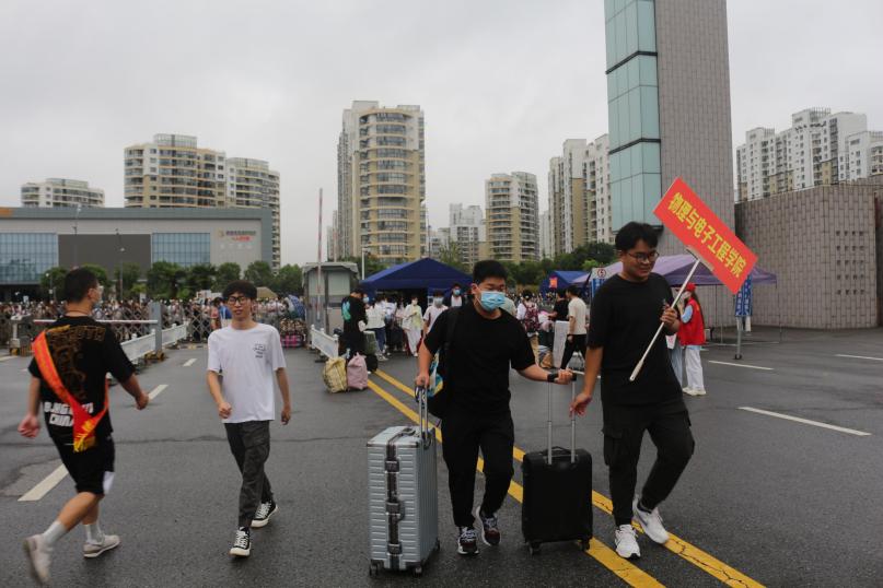 早上6点50分,新生报到处的师生们就已准备就绪,新生报到工作开始有条不紊的进行。员工志愿者指引新生扫码进校、注册登记信息、到对应班级报到。同时,志愿者们热情地为学弟学妹运输行李,三轮车、商务汽车、人工托运应有尽有。新生们在学长学姐的帮助下顺利地“一站式”入住宿舍,整个迎新过程流畅有序而又不失活力。