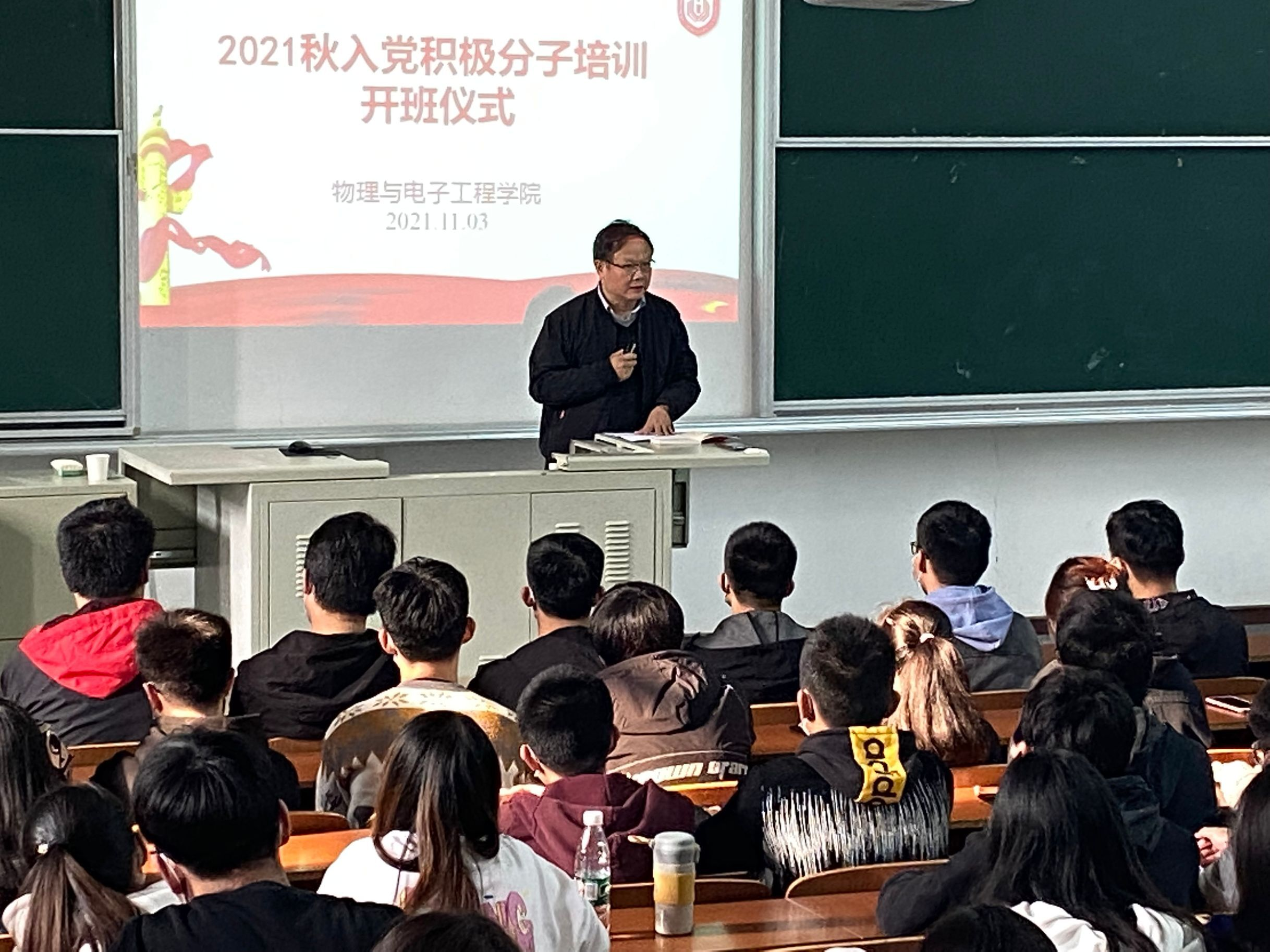 为了更好的贯彻执行《中国共产党章程》,落实好党员发展培训工作;根据公司党委要求和公司党总支部署安排,物电学院于2021年11月3日在综合楼C102召开了入党积极分子培训班开班仪式暨积极分子党课,开班仪式典礼由公司党委书记孙伟同志主持。本次培训班开班仪式除在外实习员工外,2021秋学期积极分子全员参加。