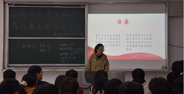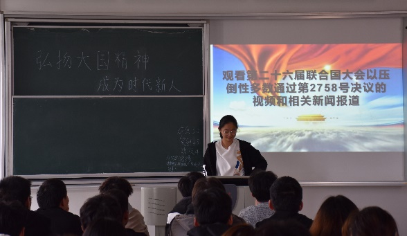 50年来,中国始终维护和践行真正的多边主义,始终恪守联合国宪章的宗旨和原则,始终维护以联合国为核心的国际体系和以国际法为基础的国际秩序。201班团支书朱慧说道:“我们作为新时代青年,要认真学习习近平总书记重要讲话精神,紧跟党中央步伐,为实现中华民族伟大复兴而不懈努力。”