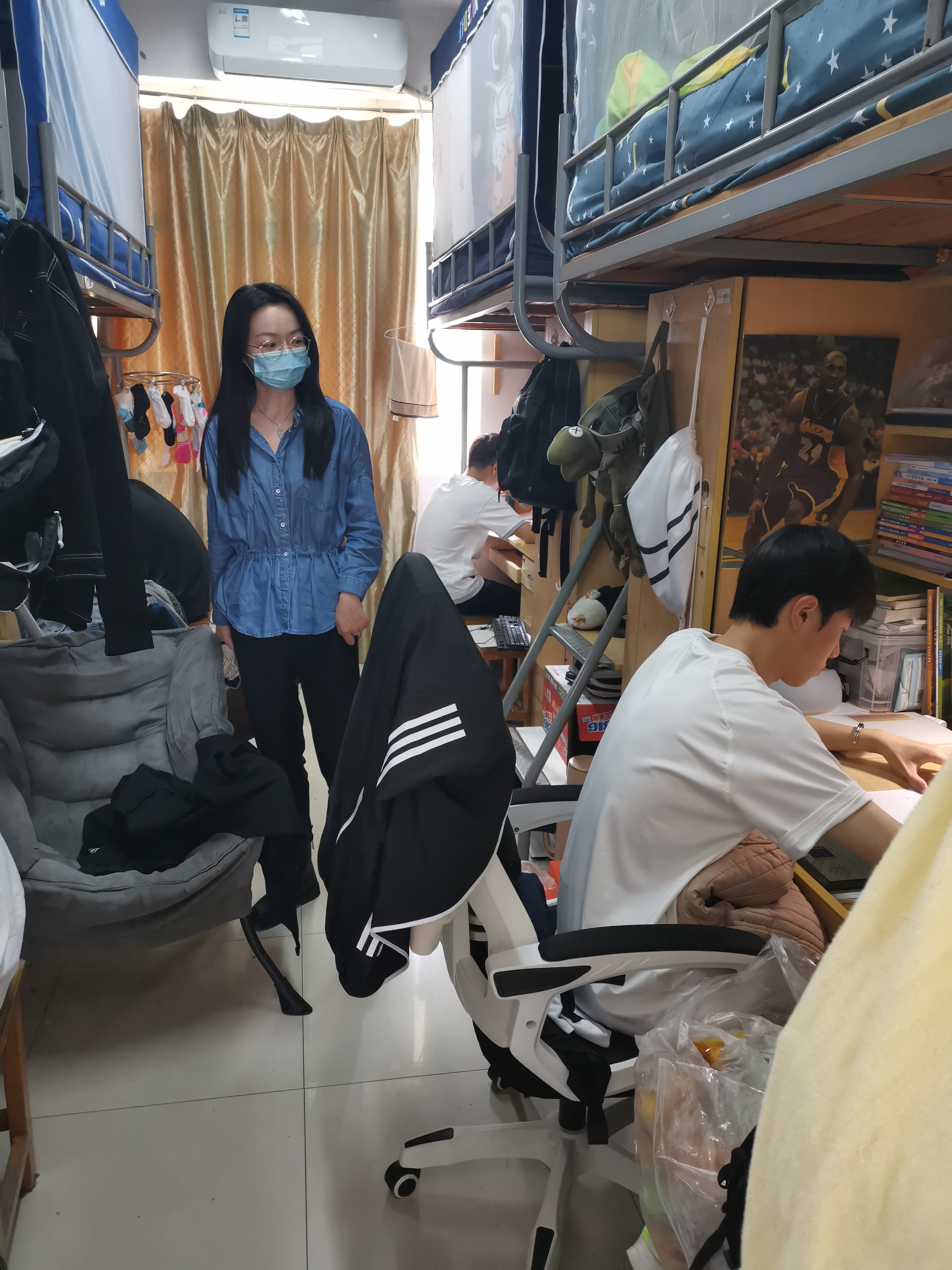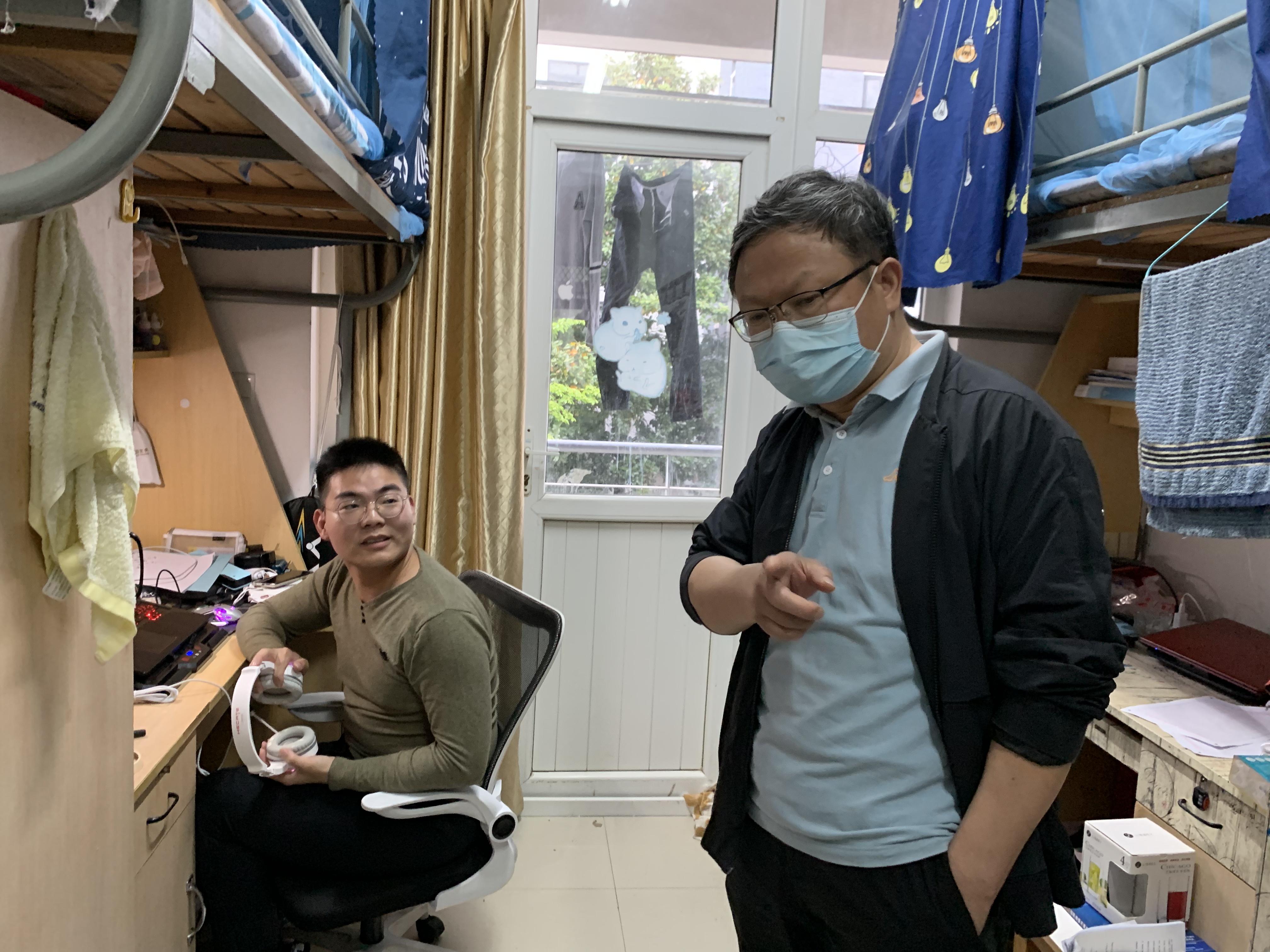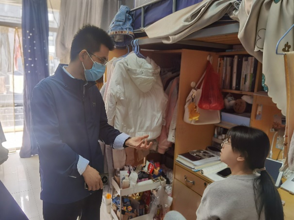 扎实做好宿舍常态化检查,确保员工安全卫生落实处。在校园封闭管理期间,学院领导与住校辅导员们多次深入员工宿舍,开展疫情防控期间学风建设督导及宿舍安全检查。在常态化走访宿舍过程中,针对疫情防控、安全隐患、卫生状况等方面重点排查,督促存在问题的同学及时整改,并始终保持与在校同学们的沟通与交流,及时了解学习生活状况及思想动态。此外,还提醒同学们要积极调整心态,认真对待线上课程,严格执行学校疫情防控的工作要求,做好个人安全防护、宿舍卫生清洁、及时开窗通风等事宜。