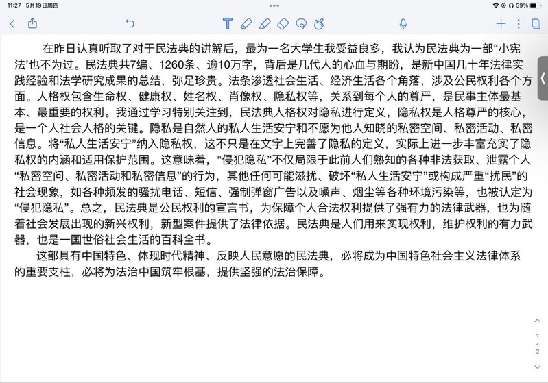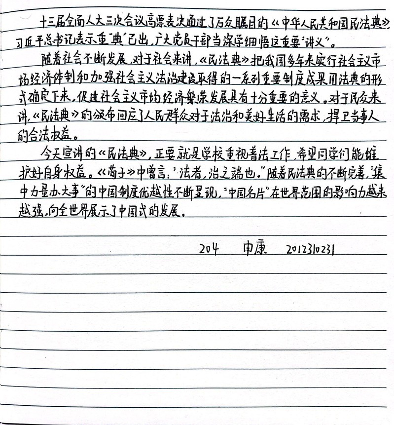 宣讲后,参会师生纷纷撰写心得感悟,拍摄参会视频,点燃了学院师生学习民法典的热情。
