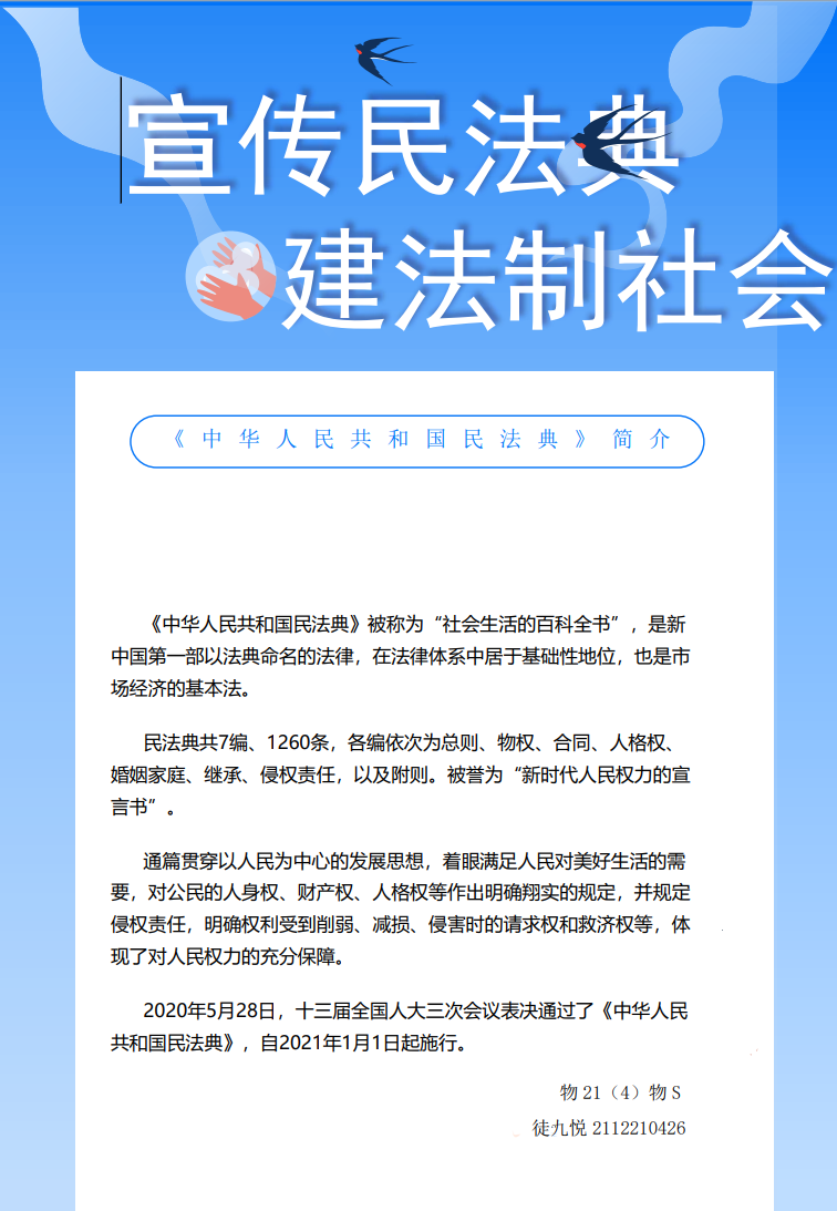 物电学院通过丰富多彩的形式开展民法典宣传月系列活动,带领师生更加了解民法典,也通过法典带领师生走近更加美好的生活。