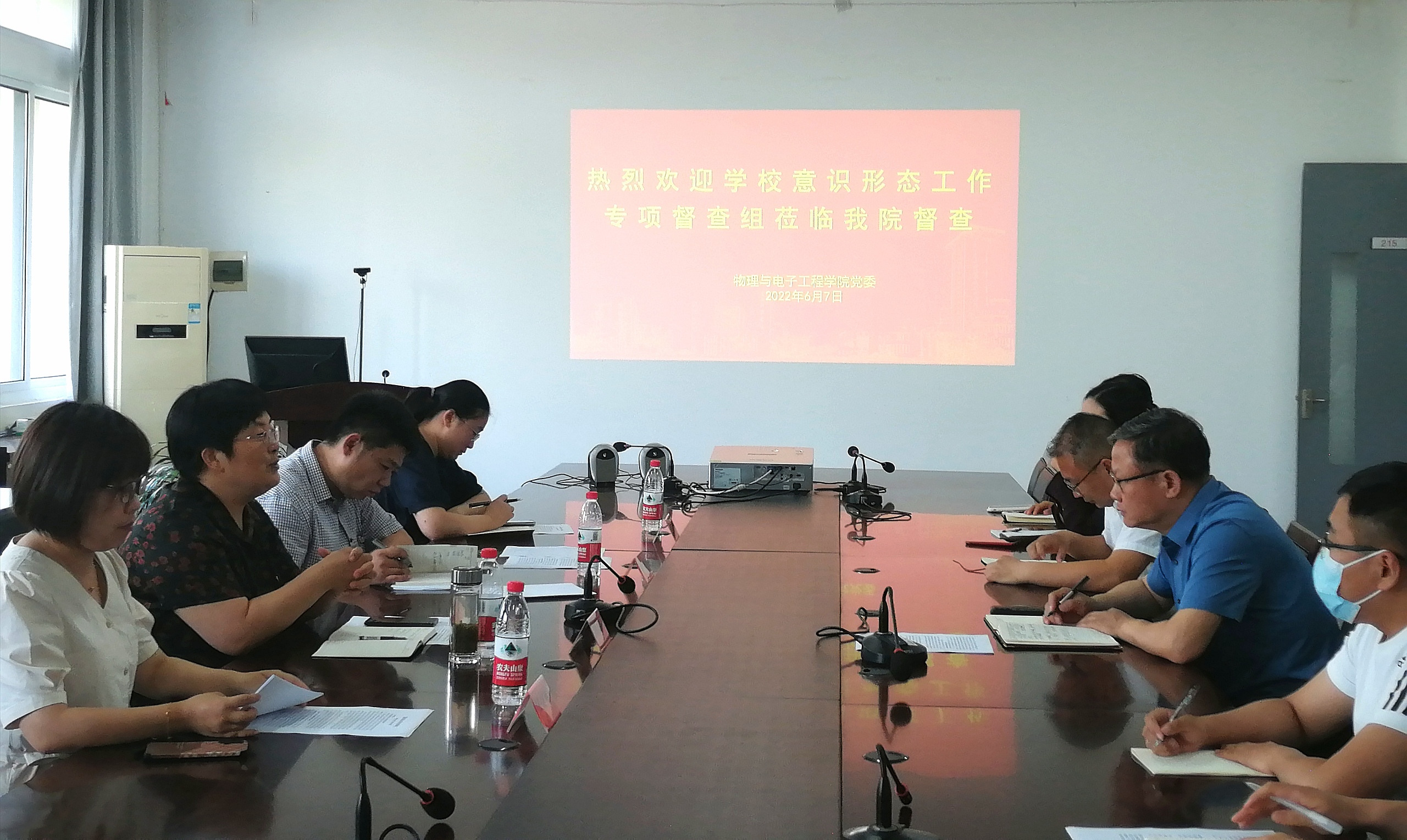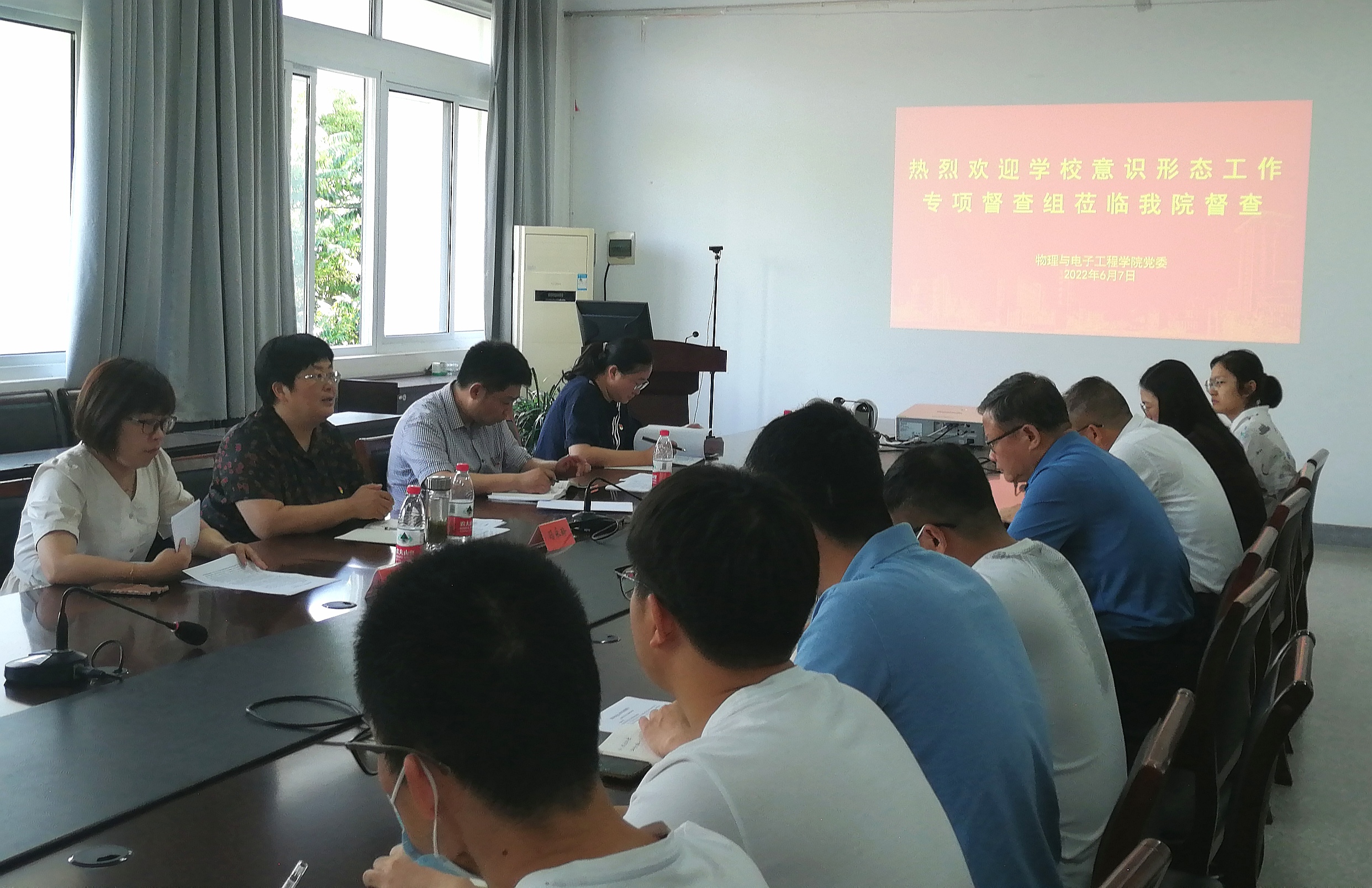 2022年6月7日下午,公司党委常委、党委宣传部部长、新闻中心主任冯永玲一行4人到物电学院督查意识形态工作。