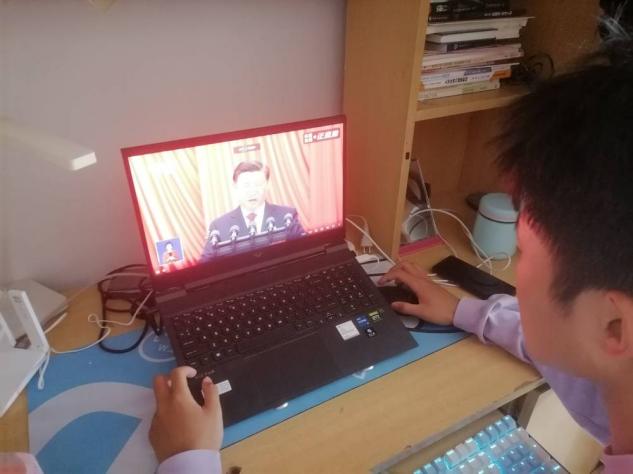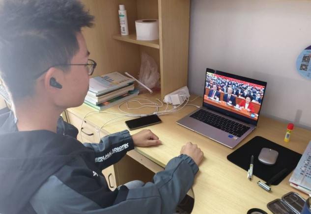 员工团员代表于综合楼B306观看直播