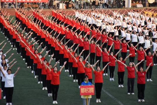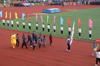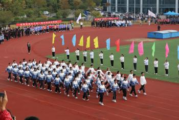 开幕式上,伴随着激情昂扬的奏乐,物电学院代表队步履整齐迈向主席台。走在前面的教师队伍身着统一服装,手持中国国旗。物电学子高呼“格物穷理,斗志昂扬,凌云赛场,勇创辉煌”的口号,以“舞动的青春”展示了物电学子的青春风采和昂扬斗志。