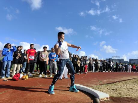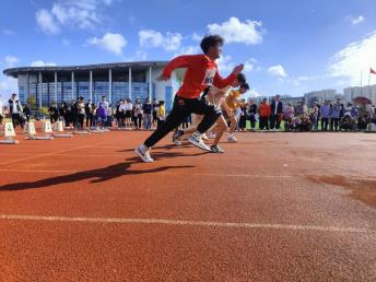 目光转向径赛赛场,气氛热烈而紧张,运动员们蓄势待发。一声号令,风一般的少年从跑道上飞驰而出,场上观众或是欢呼或是加油,此起彼伏。物电运动员们从未轻言放弃,坚持是他们奋斗的底色。