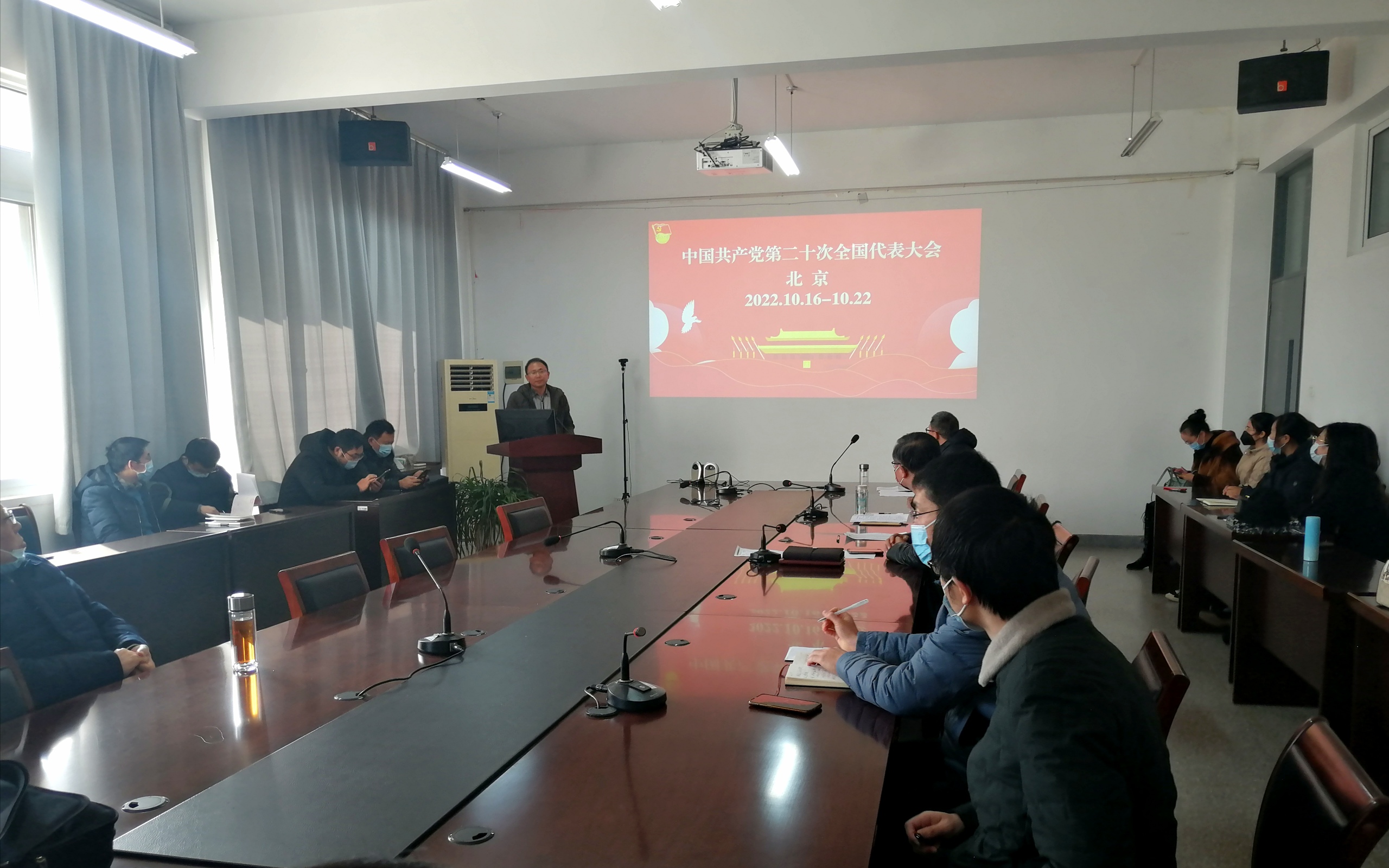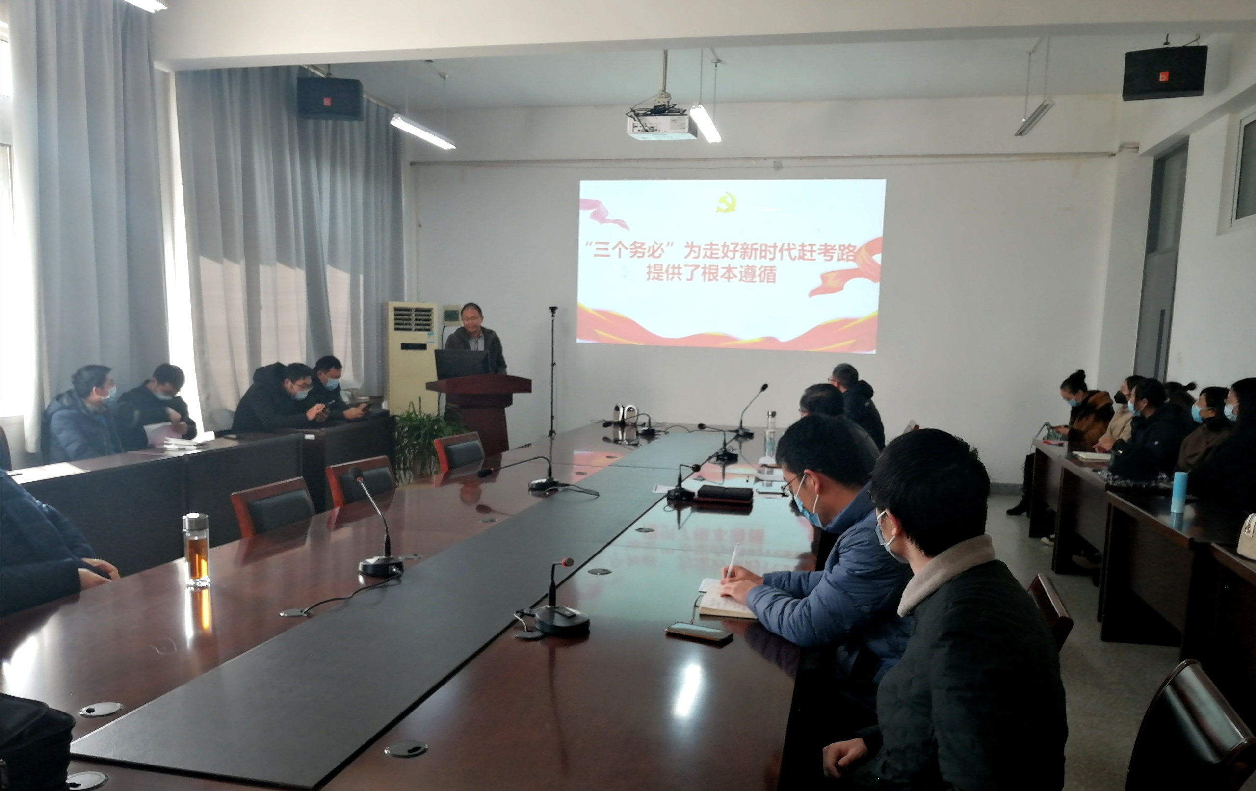 2022年12月7日下午两点,公司开展党的二十大精神宣讲会议。本次会议由物电公司党委书记孙伟主持,物电公司党委副书记雷承富主讲,学院全体教职工参加会议。会议中,雷书记作了题为《“三个务必”为走好新时代赶考路提供了根本遵循》的宣讲。