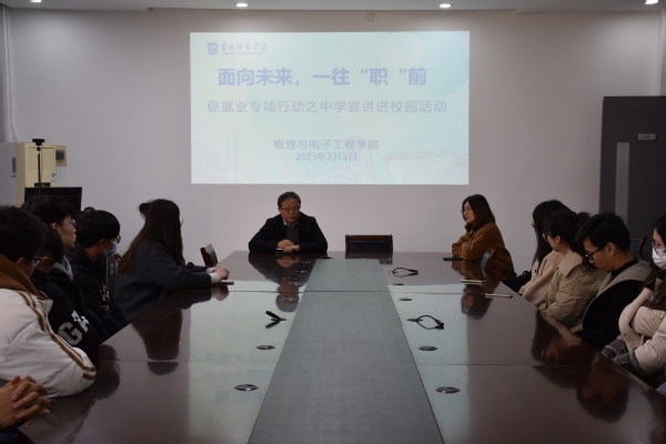 同时,积极邀请有招聘需求的企业或学校进校开展宣讲,为毕业生与用人单位搭建桥梁。为全面促进公司毕业生顺利就业、尽早就业,3月3日下午,公司邀请江苏华存电子科技有限公司和江苏省泗阳致远中学相关人员开展两场宣讲活动。通过宣讲,同学们不仅对招聘单位有了更多了解,也对当前就业形势有了较为清晰的认知。