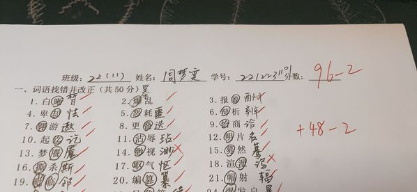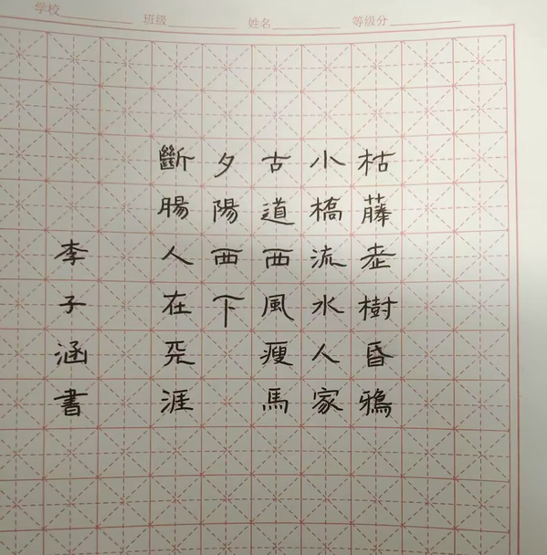 正字预赛同学的优秀答卷