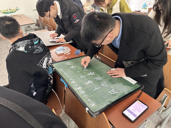 粉笔字预赛奋力书写的同学