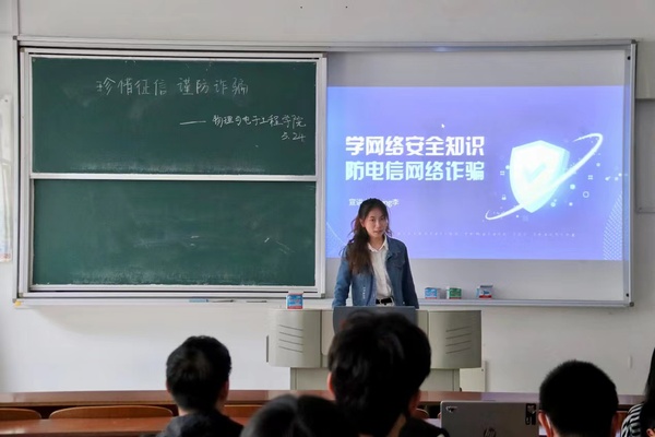 活动中,助学部李晴同学向大家详细讲解征信知识、电信诈骗的种类、惯用手段以及遇到诈骗时的处理方法。同时,李晴同学结合当前校园诈骗的真实案例,帮助同学们认清电信网络诈骗的危害,为同学们提供了实用有效的网络安全指引。
