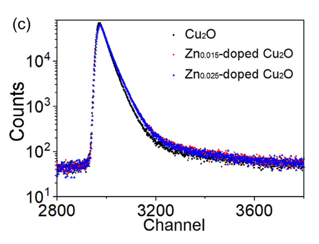 图2.Cu2O催化剂的正电子湮没寿命谱及解谱结果