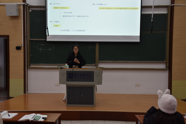 为进一步提升师范生教学实践技能,明确师范生基本功大赛备赛方向,2023年11月27日,yl6809永利检测中心于生化教学楼116开展师范生基本功大赛经验分享会。学院邀请江苏省师范生教学基本功大赛一等奖获得者葛钰、郑凯铭同学进行经验分享,21级物理师范员工参加,物理系副主任夏益祺主持。