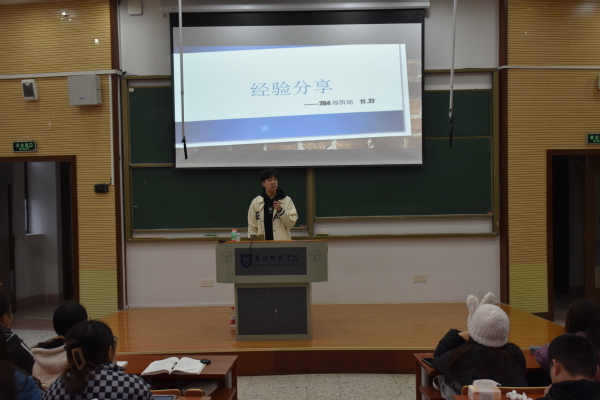 葛钰同学对师范生基本功大赛的具体流程进行了阐述,对自己的备赛经验进行了总结分享,提出了以下几点:第一,教学设计要有创新点;第二,多借鉴优秀的示范课,多看多思;第三,要培养良好的教资教态;最后,最重要的一点是保持自信。