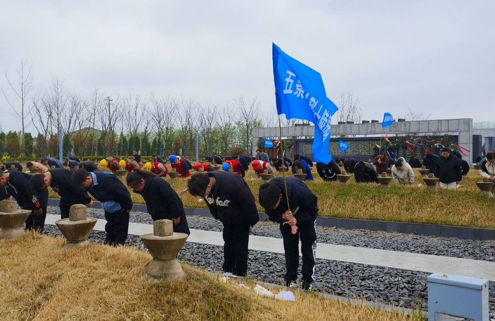 仪式最后,全体人员缓步绕行五条岭一周,瞻仰烈士墓群,献上素花并行三鞠躬礼,追思革命先烈的丰功伟绩。
