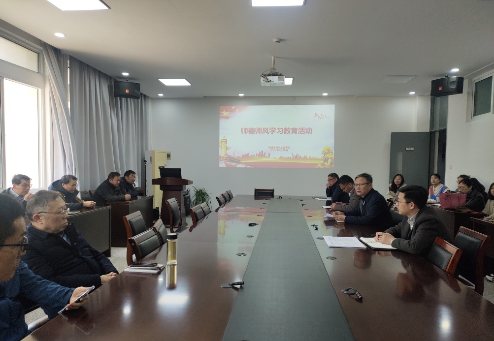 孙伟指出公司党委高度重视学院教师师德师风建设,专门成立党委教师工作委员会,要求全体教职工坚守师德师风底线,规范从教行为,以教学带学风,营造和谐的育人环境。