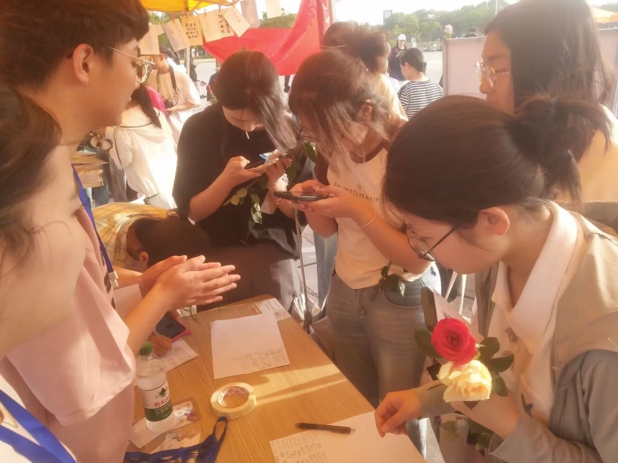 “‘声’声祝福,传递心愿”活动现场特别设置了“声音邮局”,同学们纷纷前来录制特别的语音信息,有对未来的期许、对朋友的鼓励和个人励志故事等。录制完成后,参与者可以在“声音邮局”随机打开一条录音,通过声音感受他人的能量与温度。这一活动增进了同学们之间的情感交流,也为大家的心灵带来了启迪与力量。