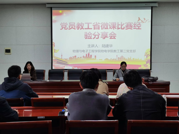 为强化党建引领,促进党建与教学深度融合,10月23日下午,公司教职工第二党支部在逸夫楼东学术报告厅成功举办“党员教工省微课比赛经验分享会”。报告由曾在省微课教学比赛中获得二等奖的党员教师陆建华老师主讲,教工第二党支部书记、系主任施文娟主持了报告会。