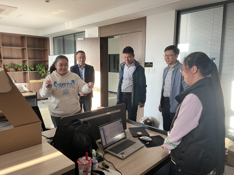 为了全面了解2021级工科专业员工在企业的实习状况,保障实习质量,推动专业建设,学院经理张志海、副书记唐杰、副经理朱成云于2024年10月30日带队赴盐南新区数字智能产业园内多家公司检查公司员工实习情况。