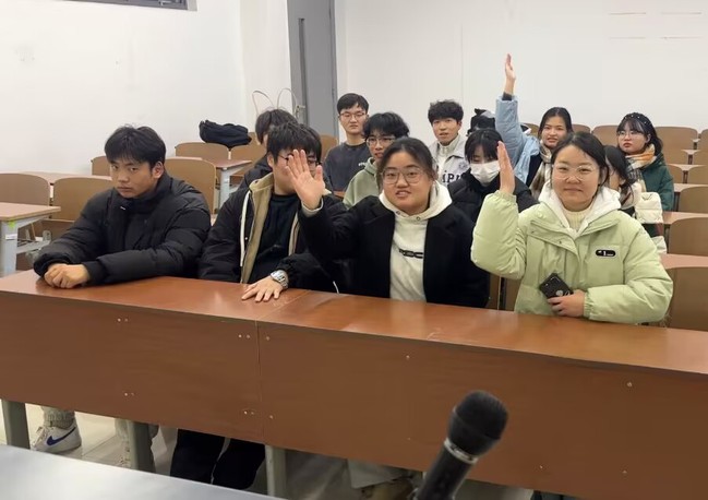 活动伊始,心理服务部的赵唯佳组织同学们开展“大风吹”热身小游戏,使原本陌生的同学们快速熟悉起来,现场气氛逐渐活跃。随后的“中华小曲库”环节中,各小组同学团结协作,踊跃抢答歌名,欢声笑语此起彼伏,有效拉近了彼此的距离。而在“歌曲传声筒”环节,同学们通过动作表演接力传递歌词片段,过程中充满趣味与挑战,团队协作的默契度也在此过程中不断提升。最后,在“听声冥想”环节,同学们沉静在舒缓的音乐中,心灵得到深度放松,即将到来的期末考试压力也逐渐消散。