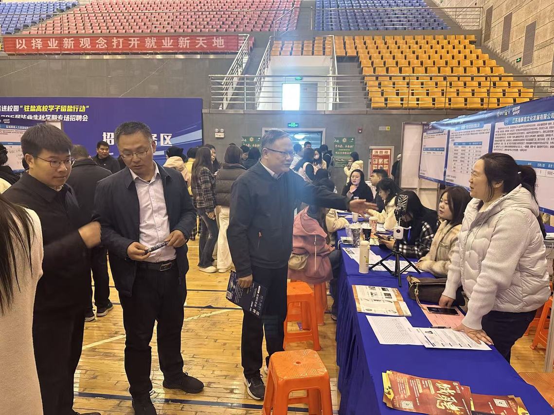 同日下午,孙伟、唐杰以及毕业班辅导员一同来到“职'聚盐师、'就'向未来”yl6809永利检测中心2026届毕业生秋季专场招聘会现场,走访多家与学院专业相关的用人单位,详细了解岗位需求、招聘进展及毕业生投递情况,并与部分企业代表进行现场沟通,积极推荐公司毕业生。