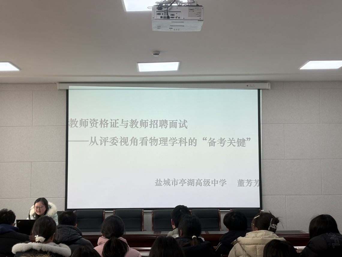 3月11日下午,公司特邀盐城市亭湖高级中学副董事长、盐城市高中物理学科带头人潘国盛,江苏省教学名师、盐城市高中物理学科中心组成员董芳芳,为公司师范生作专题讲座。